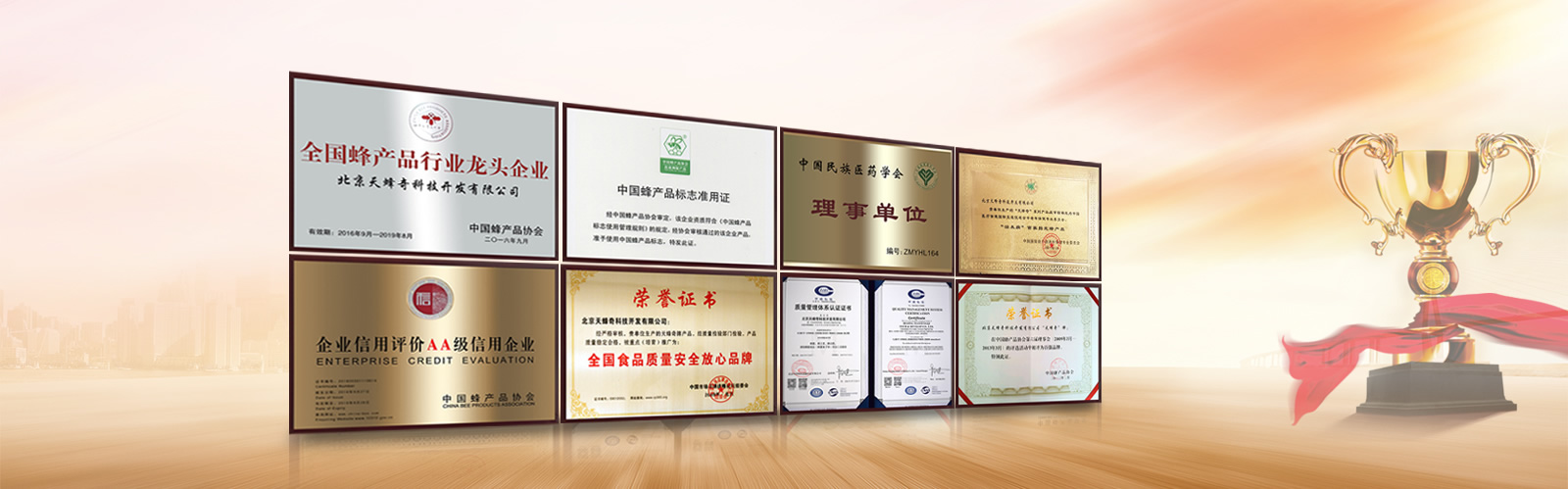 被評(píng)為“全國(guó)蜂產(chǎn)品行業(yè)龍頭企業(yè)”、“全國(guó)食品質(zhì)量安全放心品牌” 等。蜂膠獲得國(guó)家保健食品認(rèn)證。